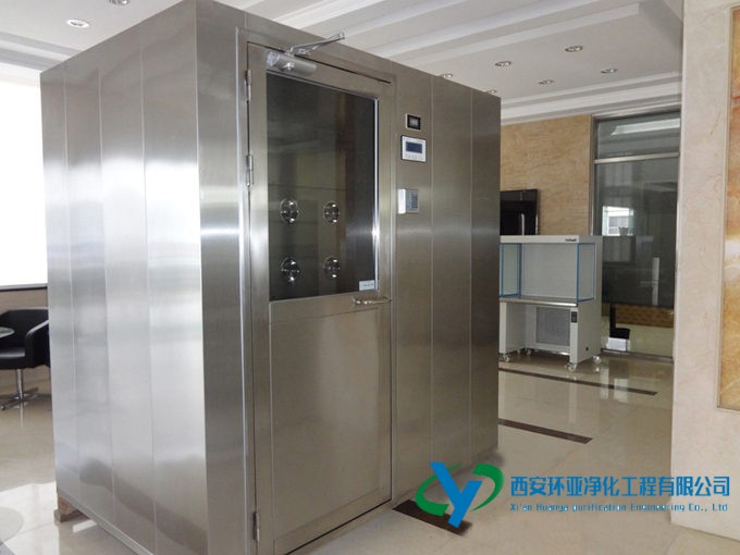 风淋室是人进入洁净室所必需的通道,它可以减少进出洁净室所带来的污染问题,减少由于人货进出带来的大量尘埃粒子由洁净室的入口处安装功能齐全的“气闸室”可以减少空气污染微粒的数量,当人货通过风淋室时,污染微粒被经过高效过滤的高度洁净空气射掉,25m/s以上的高风速确保了有效的喷射和飘移微粒经过初效和高效两级过滤器基本过滤掉。为了保持风淋的安全使用,维持洁净室环境的洁净度
